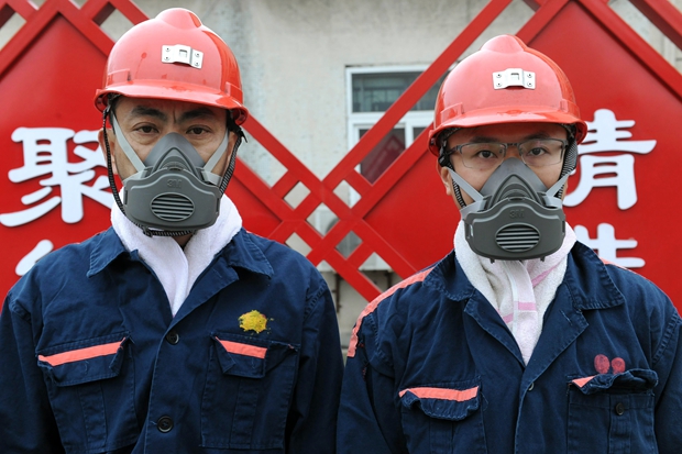 (圖為朱仙莊礦職工正確佩戴防塵口罩入井。朱安 攝)