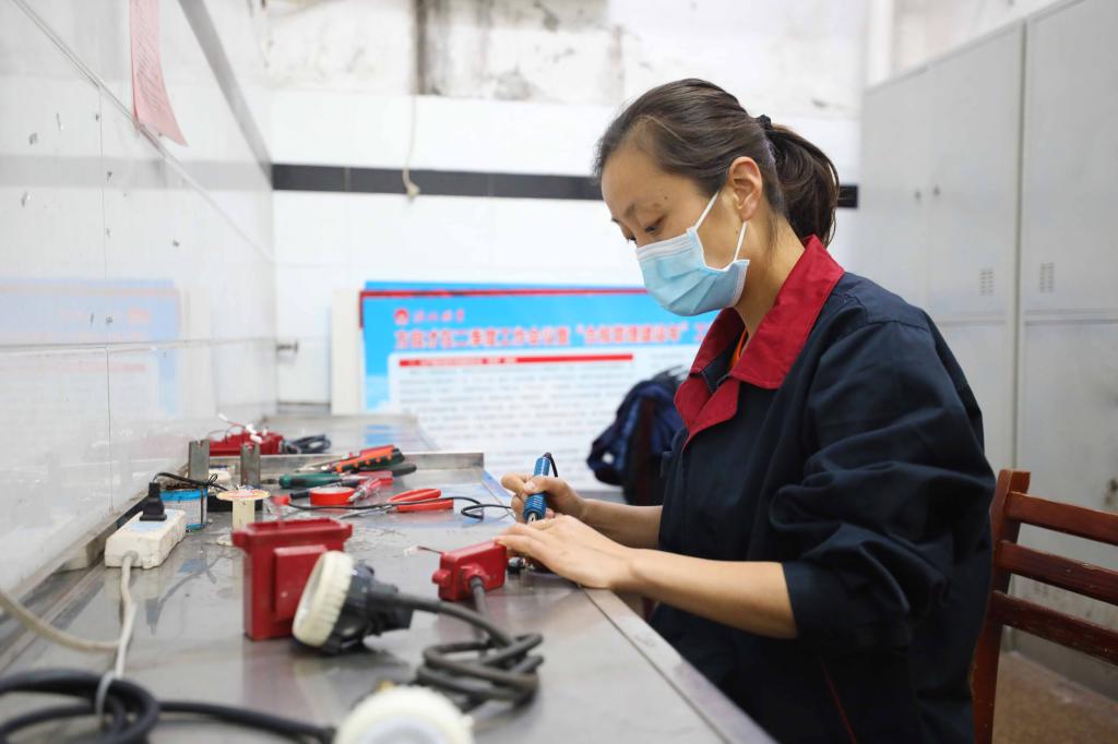 燈房班女工負責維護全礦2200盞礦燈和自救器檢測,而班長鄭班班則是其中一員,礦燈是礦工的眼睛,為了確保礦燈安全完好,鄭班班每天定期巡檢礦燈,保證礦燈完好率100%。她始終堅持勤儉節約,將廢舊礦燈的護線管、燈線、帽勾、大圈等零配件拆下,分類存放,經檢驗合格后投入日常維修使用,組織班里女工親自動手將之前的定位識別卡芯片拆除后裝到新燈內,不需要直接從廠家進帶卡的礦燈,每年可節約20多萬元。