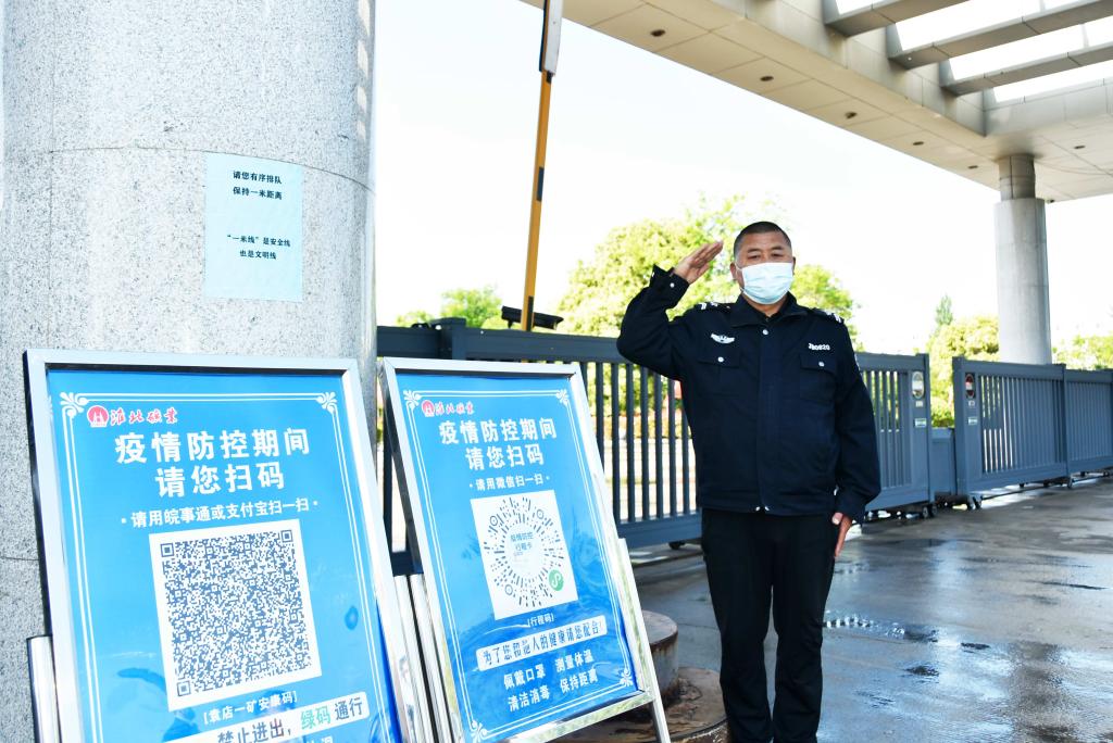 在該礦東門崗,本土“大白”仍然堅守在礦井戰疫第一線,嚴格地執行著查驗、登記等各項疫情防控措施。當班的“大白”是該礦物業公司治保隊員李勇,這個“五一”他依然選擇堅守崗位,為礦井守好外防輸入的第一道關口。