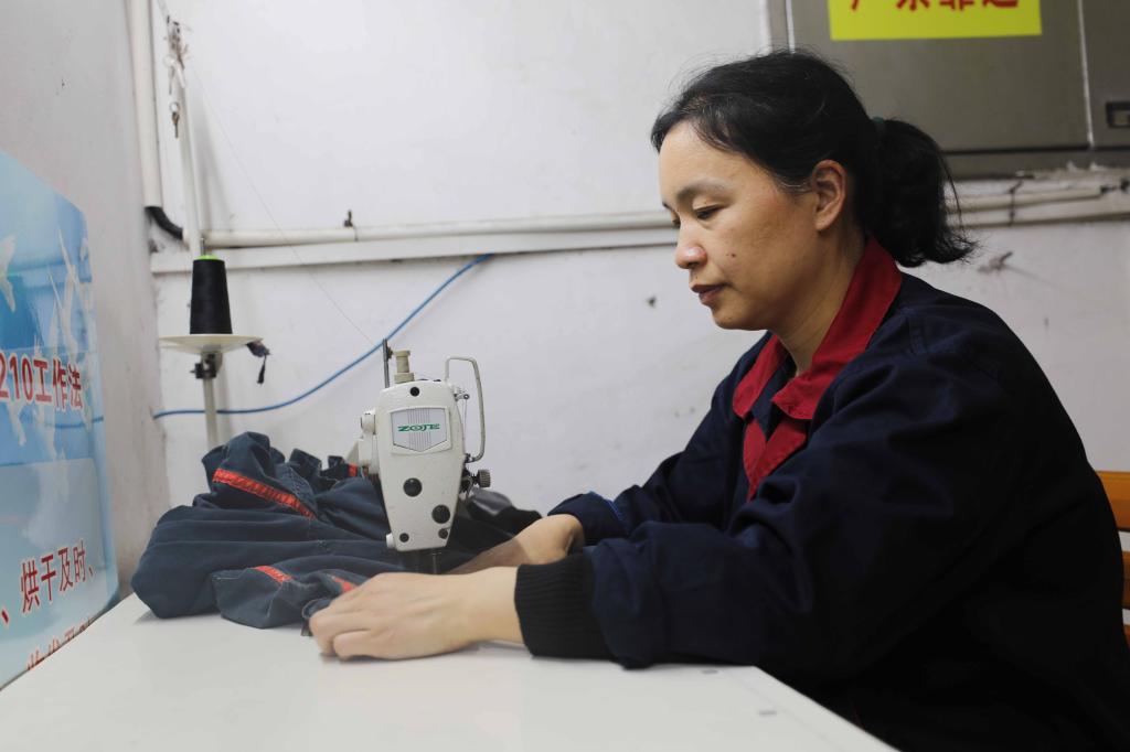 洗衣工楊襯心正在為職工縫補工作服。“節日期間一線師傅們不放假,我們就要服務到位,及時把破損的衣服縫補好,就和他們及時消除安全隱患一樣,一刻也不能耽擱。”