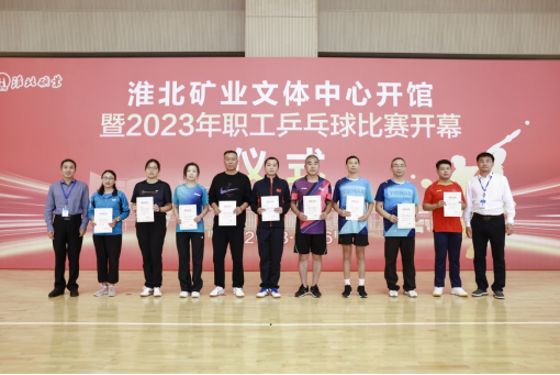 在中秋、國慶來臨之際,9月26至27日,淮北礦業(yè)集團在新落成的文體中心舉辦“喜迎國慶、‘乒’搏有你”2023年職工乒乓球比賽,經(jīng)過兩天的激烈比拼,決出了男子團體、女子團體、男子單打、女子單打、優(yōu)秀組織獎等各類獎項,集團工會第一副主席劉杰和工會、物業(yè)分公司相關(guān)負(fù)責(zé)人為獲獎單位和選手頒獎。
