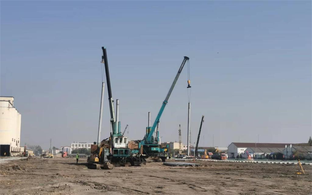 “8月31日開(kāi)工儀式后,項(xiàng)目部進(jìn)場(chǎng)施工。目前,場(chǎng)內(nèi)樁基施工已完成95%;集裝箱裝卸場(chǎng)地、露天堆場(chǎng)、跨鐵路線倉(cāng)庫(kù)進(jìn)入基礎(chǔ)施工階段;專(zhuān)用線鐵路改造施工已經(jīng)過(guò)半。”工程部部長(zhǎng)孟磊介紹,當(dāng)下正值秋季施工黃金期,11月份集裝箱裝卸場(chǎng)地、露天堆場(chǎng)開(kāi)始混凝土澆筑,12月底具備運(yùn)營(yíng)條件。