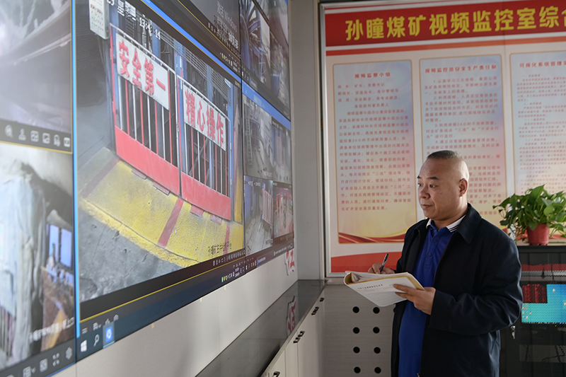 在該礦視頻監(jiān)控室,面對(duì)6塊監(jiān)視大屏的24個(gè)作業(yè)點(diǎn),安監(jiān)員王建兩眼來(lái)回逡巡,緊盯屏幕,認(rèn)真觀察每一個(gè)作業(yè)場(chǎng)所的規(guī)范作業(yè)情況,時(shí)而在隱患登記簿上記錄,時(shí)而拿起電話聯(lián)系,為礦井守好安全生產(chǎn)的第一道關(guān)口忙得不亦樂(lè)乎。