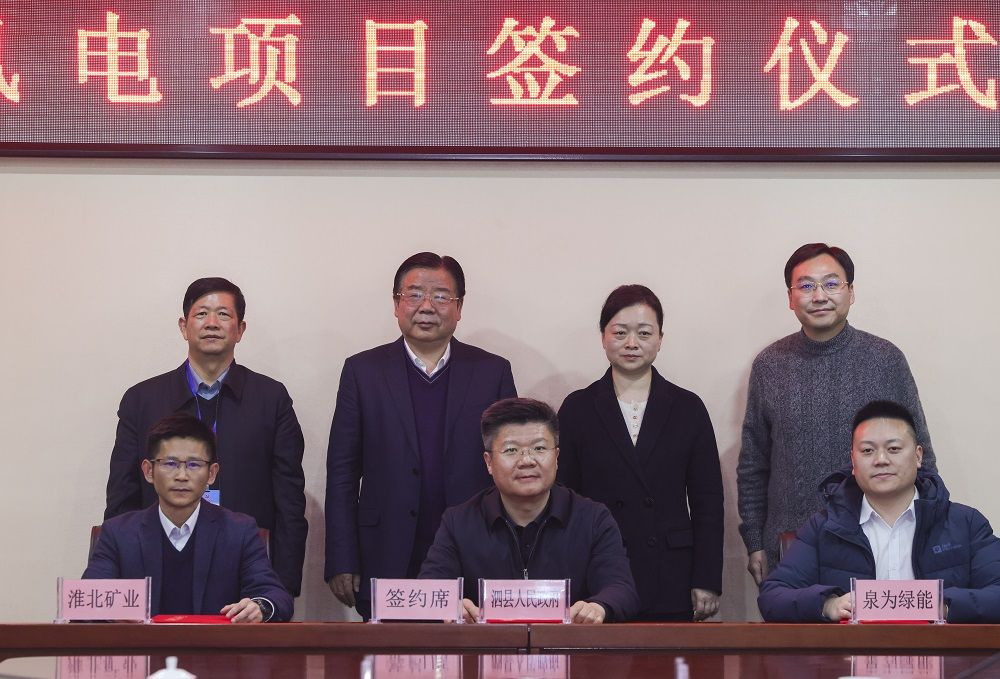 2月14日,淮北礦業(yè)集團與泗縣人民政府、泉為綠能投資(海南)有限公司舉行三方簽約儀式,順利簽約300兆瓦泗縣風電項目。淮北礦業(yè)集團黨委副書記、總經(jīng)理孫方,淮北礦業(yè)副總經(jīng)理陳亞東;泗縣縣委副書記、縣長王汝娜,縣委常委、副縣長王躍明,以及泉為綠能投資(海南)有限公司、上海贏古資產(chǎn)管理公司負責人出席了簽約儀式。