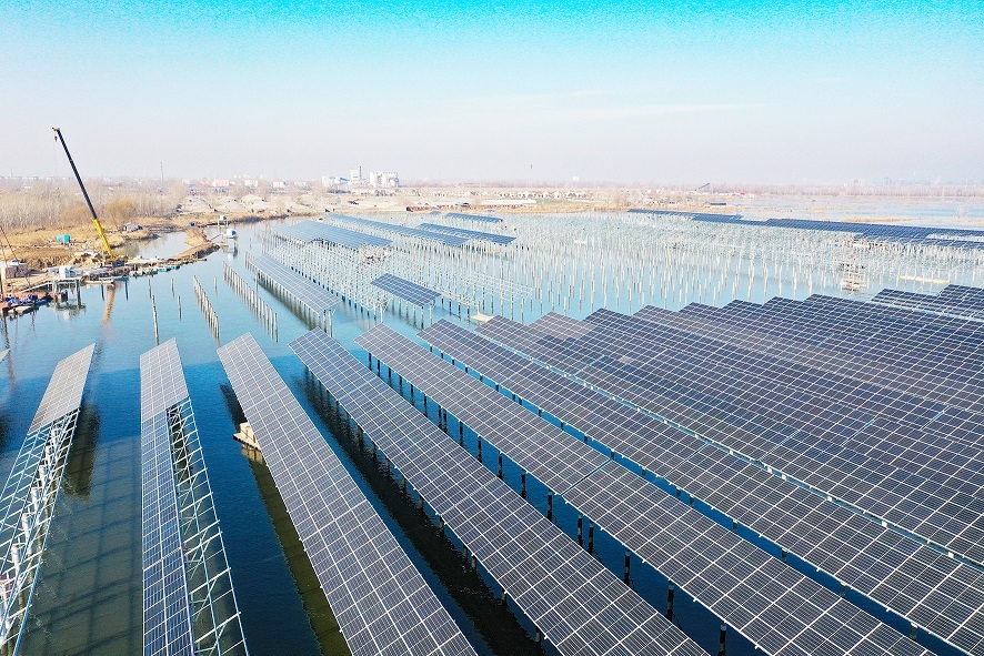 中煤大屯新能源示范基地(一期工程)位于微山湖畔,利用礦區采煤沉陷區發展漁光互補產業。該項目裝機容量263兆瓦,采用漁光互補模式,總占地面積約5847畝,設計安裝雙面單晶硅光伏組件,采用分塊發電、集中并網的方案。中煤大屯公司將依托自有電網優勢,加快推進新能源和綜合能源服務等重大產業項目建設,努力打造國家級百萬千瓦級新能源示范區。該項目建成后,預計運營期內平均年上網電量為30941萬千瓦時,相應減少二氧化碳、一氧化碳、二氧化硫等有害氣體排放。