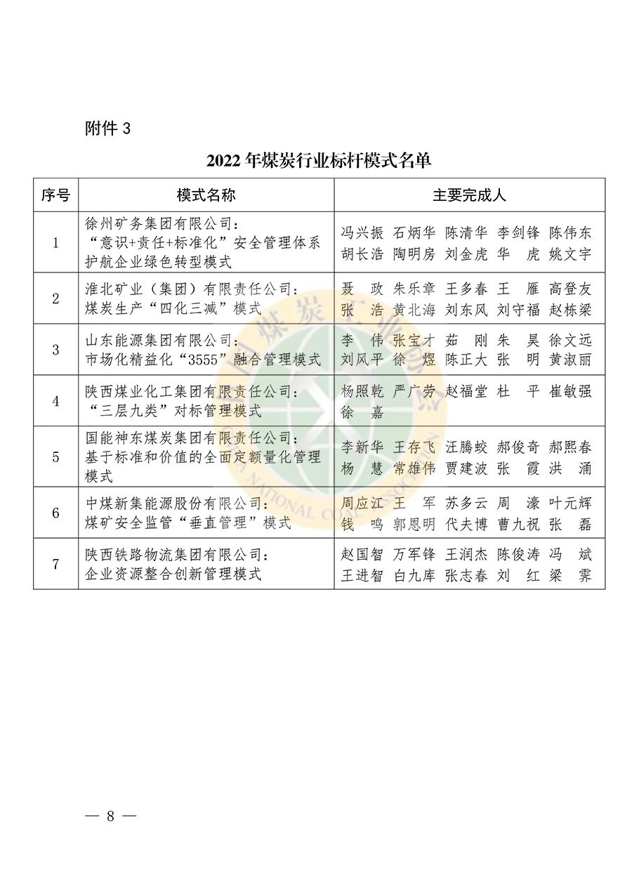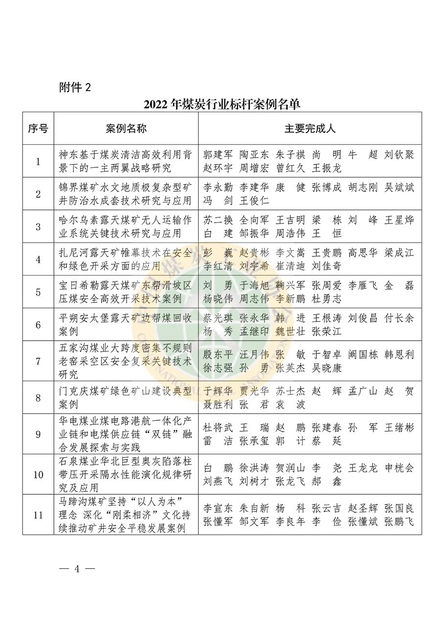 中國煤炭工業協會關于發布2022年煤炭行業標桿煤礦、標桿案例和標桿模式的通知